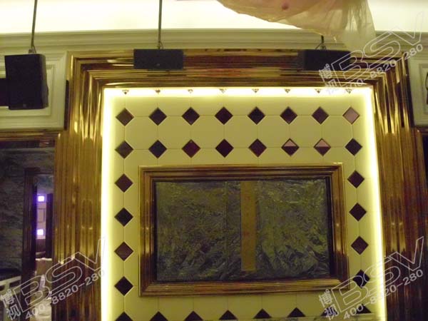 拼接方式:46寸液晶拼接屏采用14組2X2拼接方式,安裝在不同包廂,壁掛式安裝與周邊裝飾相輔相成,盡顯時尚典雅。