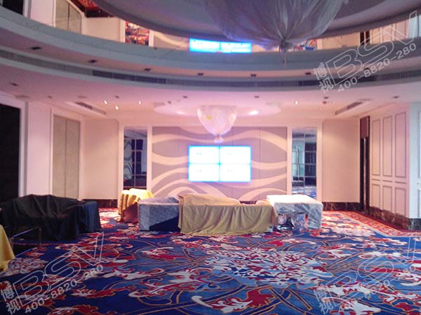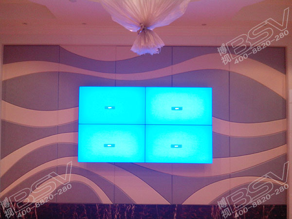 拼接方式:46寸超窄邊拼接屏,采用2組2行2列拼接方案,壁掛式安裝,主要用于酒店接待大廳展示、酒店主要信號(hào)以IPTV機(jī)頂盒播放為主。本次項(xiàng)目合作是武漢博視同創(chuàng)電子有限公司和武漢太子酒店多個(gè)大屏幕項(xiàng)目合作工程之一。