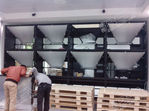 拼接方式:采用67寸DLP背投1組2X4拼接方式,M1型機(jī)柜安裝方式,先進(jìn)拼接技術(shù)拼縫窄至0.5mm。屏幕運(yùn)用數(shù)字色域平衡及混合控制電路(DSC),準(zhǔn)確調(diào)節(jié)7色(RGBCMYW)色域及混合色增益差,有效抑制不同光機(jī)引擎間色彩差異,保證整屏色彩均勻度達(dá)到高度一致。武漢博視同創(chuàng)電子有限公司工程人員通過對混合控制電路調(diào)整要個控制色度。本DLP投影顯示單元由武漢博視同創(chuàng)電子的投影光機(jī)引擎、投影屏幕、反射鏡、箱體四大部分組成,構(gòu)成一體化的獨(dú)立顯示單元。武漢博視同創(chuàng)電子有限公司DLP投影顯示單元采用通用尺寸箱體設(shè)計(jì),標(biāo)準(zhǔn)一次反射結(jié)構(gòu)設(shè)計(jì),適合任何一款光機(jī)引擎??蚣苁较潴w結(jié)構(gòu)在承重與自重之間取得良好平衡,堅(jiān)固穩(wěn)定,適宜多層堆疊及弧形拼接。武漢博視同創(chuàng)電子有限公司可提供50英寸、55英寸、60英寸、67英寸、80英寸、84英寸、100英寸、120英寸等規(guī)格,采用后維護(hù)、前維護(hù)不同結(jié)構(gòu)設(shè)計(jì)的DLP顯示單元,以滿足不同用戶個性化顯示墻安裝需求。