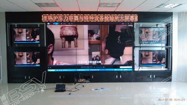 本次采用3X3拼接方案,兩側配備42寸液晶監(jiān)視器實現(xiàn)了大屏幕顯示,多屏顯示方式。